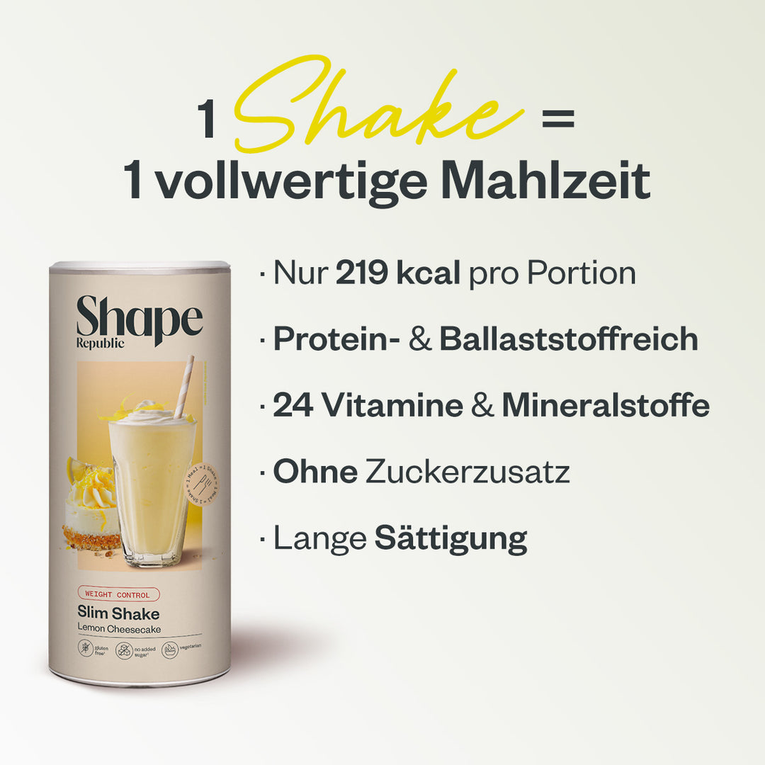 Du solltest maximal zwei Mahlzeiten am Tag durch einen Slim Shake ersetzen, wenn du Gewicht verlieren möchtest. Die Slim Shakes können dich über einen begrenzten Zeitraum dabei unterstützen, Gewicht zu verlieren. Ersetze eine Mahlzeit durch einen Shake um dein Gewicht zu halten. Achte außerdem auf eine ausreichende Flüssigkeitszunahme. Auch nach einer Diät kannst du die Slim Shakes wie z.B. Proteinpulver nutzen um deine Mahlzeiten geschmacklich aufzupeppen oder mit Nährstoffen anzureichern. Eine gesunde Lebensweise ist wichtig: Die reine Einnahme von Mahlzeitersatz Shakes ohne andere Lebensmittel über einen gewissen Zeitraum, kann nach Absetzen der Shakes zum sogenannten "Jo-Jo Effekt" führen. <i>Quelle: Hamann, A. "Adipositas." </i>