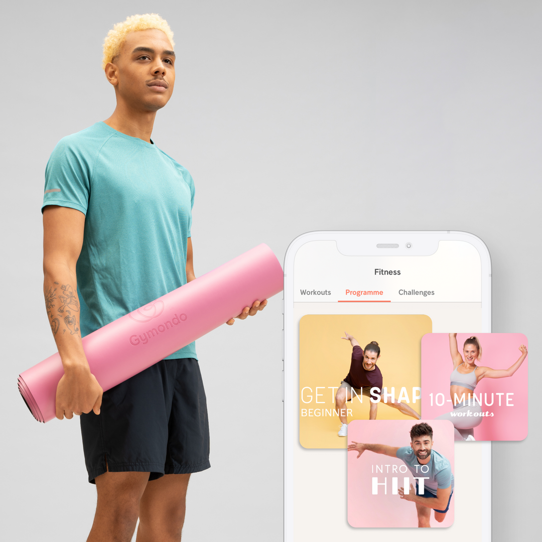Eine rutschfeste Fitnessmatte und 3 Monate Gymondo Plus Abo (im Wert von 39,98€) gratis dazu – die ideale Ausstattung für dein Training.