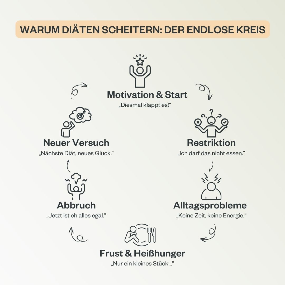 ➡️Scheitern ist eigentlich vorprogrammiert, denn die Diät passt nicht zu deinem Leben.